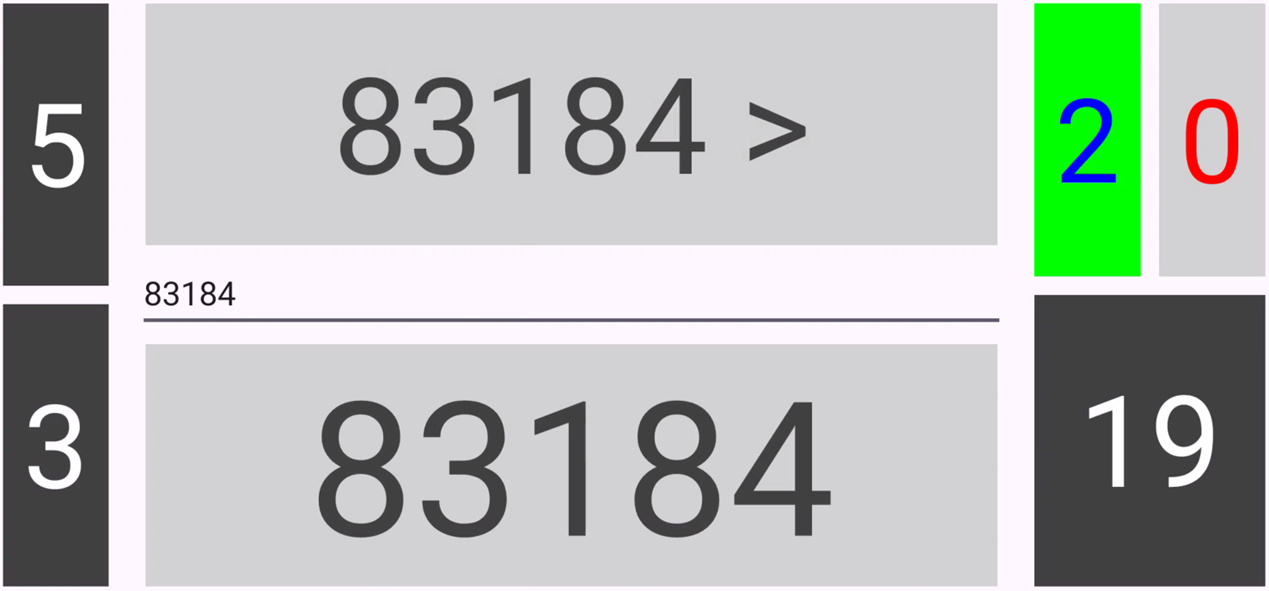 - 1자리부터 9자리까지 문제로 제시되는 숫자열을 맞추는 게임