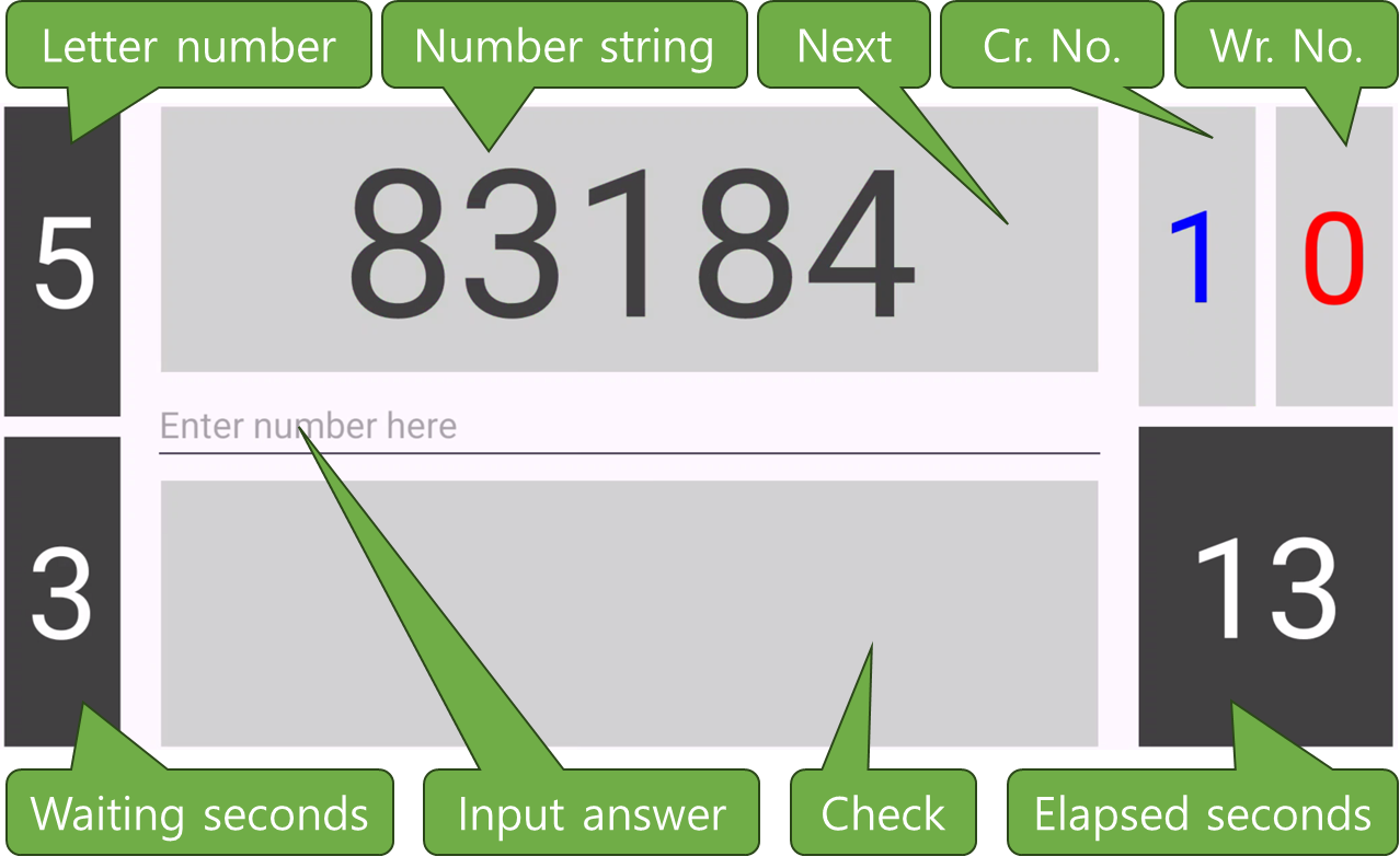 - A game to guess the number string presented as a problem from 1 to 9 digits