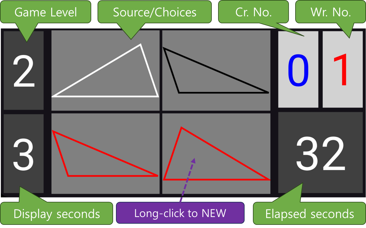 - A game where you find a shape with the same shape (shape, color, background color) as the shape shown in the problem.