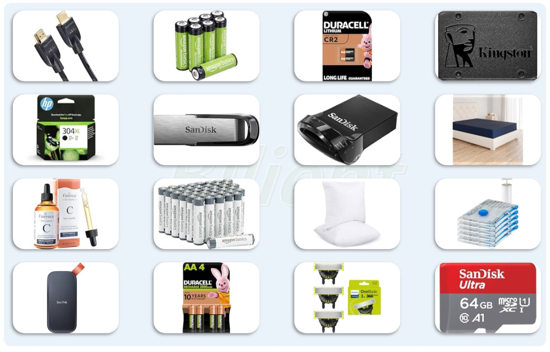 | Weekly | Amazon Basics - Piles Alcaline AAA 1,5 V pour le quotidien, Lot de 36 (le visuel peut différer) | 2175 |
