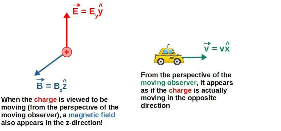 - 한 관성계에서 순수한 전기장이 있을 때, 이에 대해 상대적으로 운동하는 관성계에서는 자기장도 관측됨.