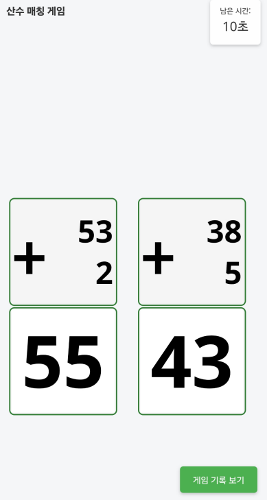산수 매칭 게임 남은 시간 : 초 게임 기록 보기
