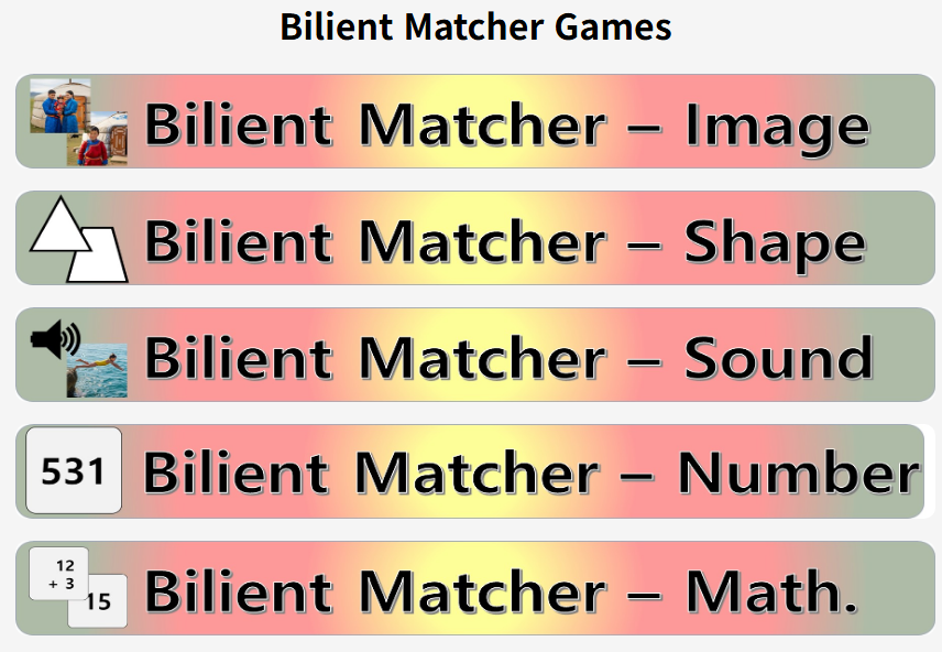 Bilient Matcher Games - 이미지, 도형, 소리, 숫자, 산수