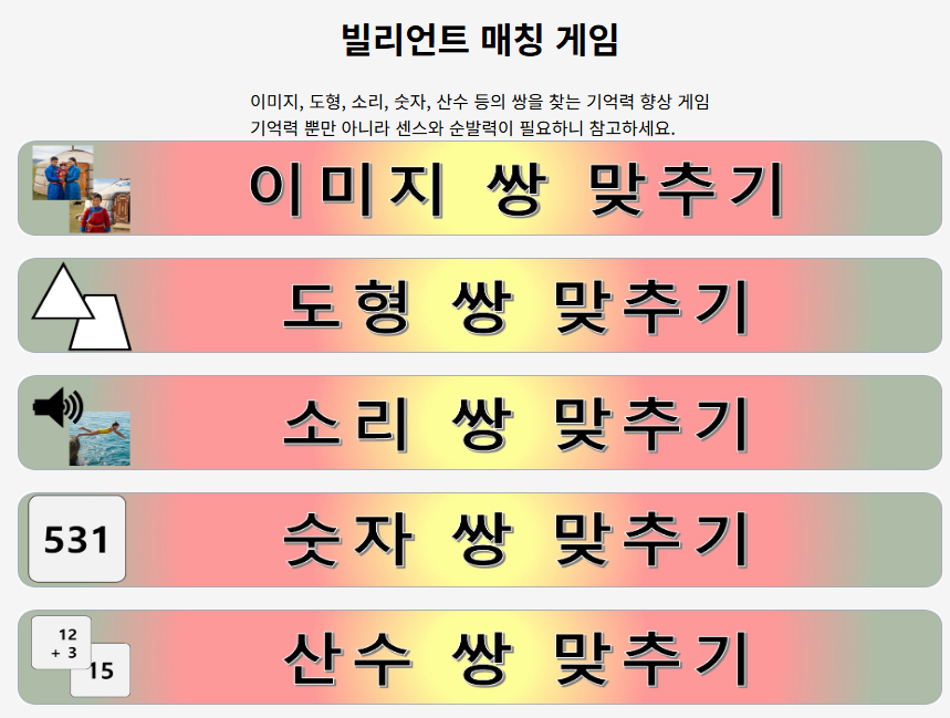 | Bilient Matcher - Image(이미지 매칭 게임) 소개 (0) | 2025.06.24 |