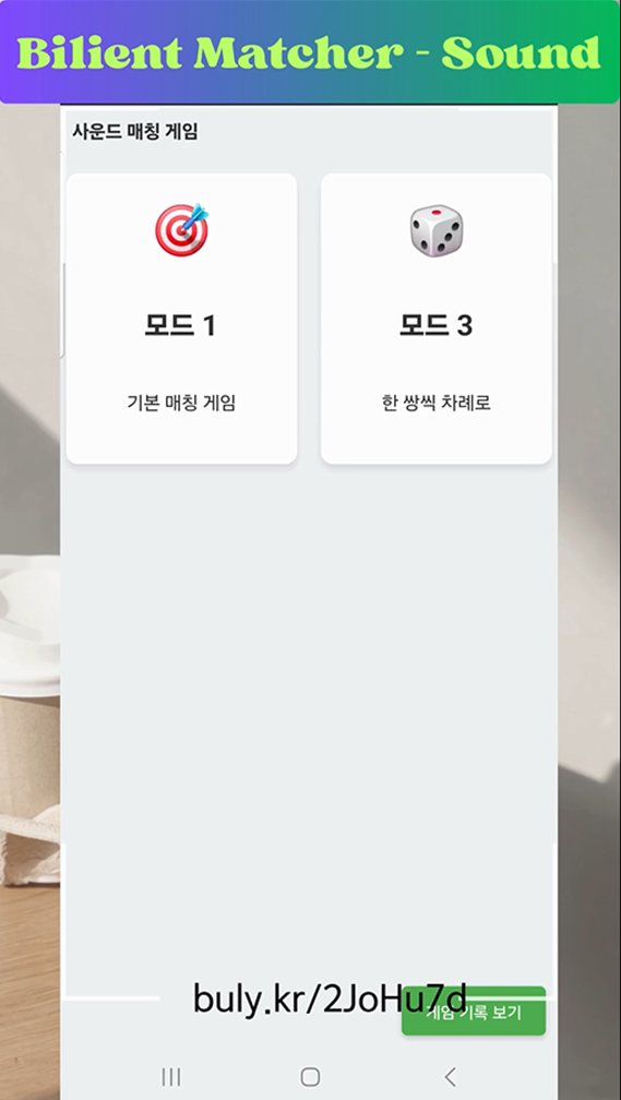소리 매칭 게임(Bilient Matcher - Sound)는 시각적 이미지와 청각적 사운드를 결합한 인터랙티브 메모리 매칭 게임입니다.