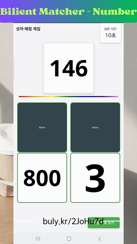숫자 매칭 게임(Bilient Matcher - Number)는 일반적인 카드 맞추기 게임과는 숫자를 이용하여 차별화된 다양한 학습적∙시각적 요소를 갖추고 있습니다.
