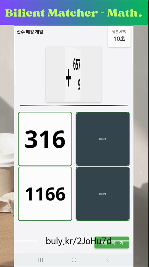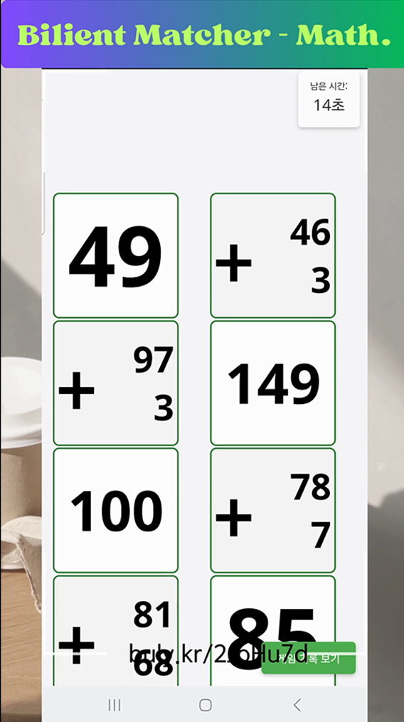 산수 매칭 게임(Bilient Matcher - Math.)는 전통적인 메모리 카드 게임에 산수 연산 학습 요소와 사용자 맞춤 시각 효과를 결합한 인터랙티브 교육 게임입니다.