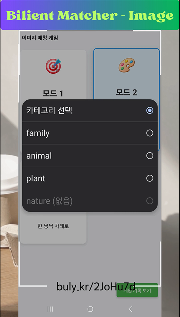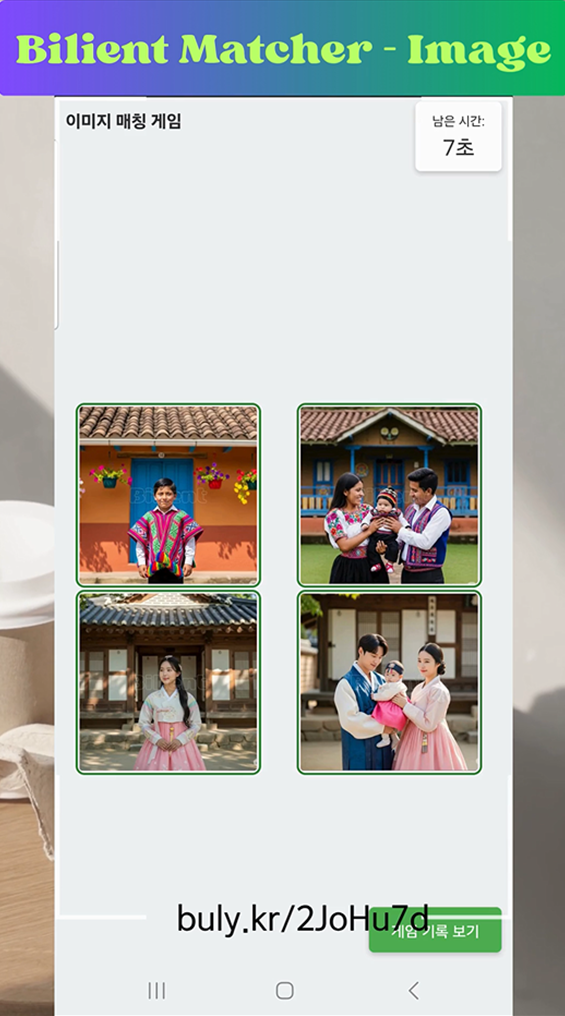 이미지 매칭 게임(Bilient Matcher - Image)은 시각 기억력 향상을 위한 고급 이미지 매칭 게임으로, 일반적인 메모리 게임을 발전시킨 3가지 독창적인 게임 모드를 제공합니다.