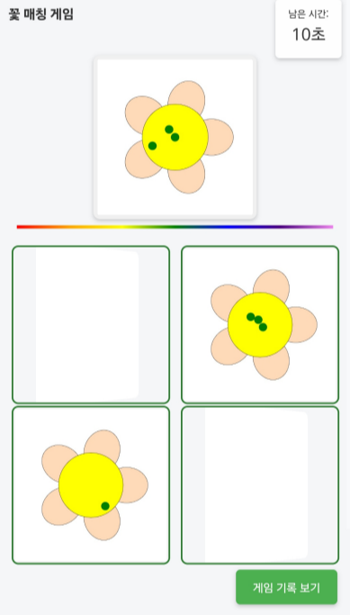 - 같은 꽃 쌍을 순차적으로 맞추는 게임