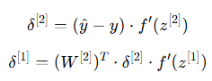 - 출력층에서 은닉층으로 오차가 전달되며, 은닉층에서도 같은 방식으로 활성화 함수의 변화량을 곱해줌.