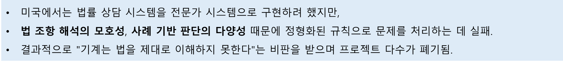 - 또 다른 예: 법률 도메인의 전문가 시스템 실패
