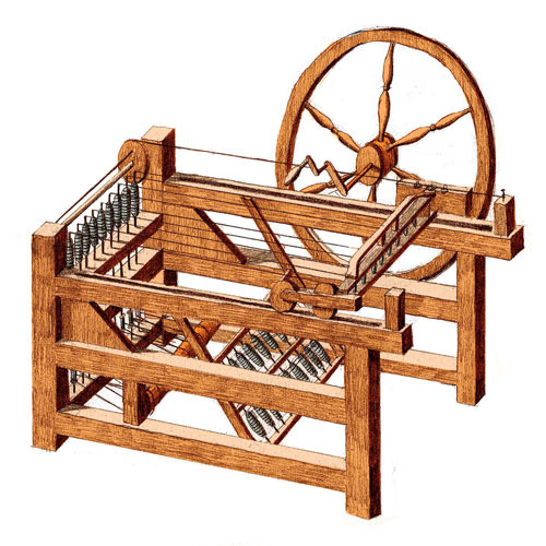 - 물(수력)을 동력으로 한 방적기, 대량 생산 가능