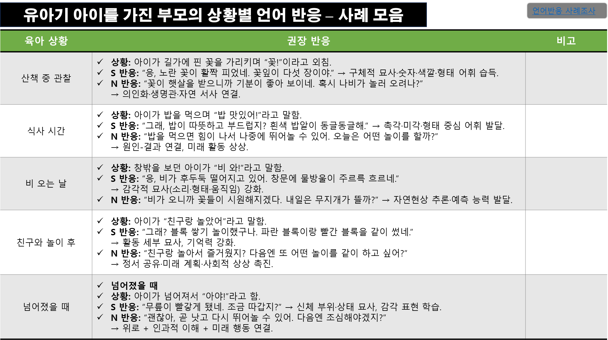 | 유아기 아이를 가진 부모의 상황별 언어 반응 – 사례 모음 (0) | 2026.01.19 |