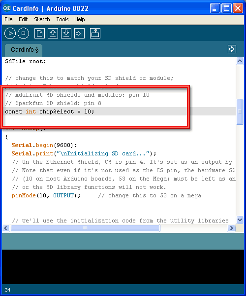 OK, now insert the SD card into the Arduino and upload the sketch