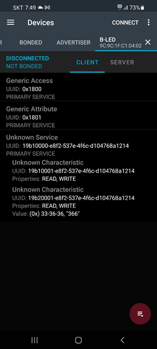 BLEByteCharacteristic switchCharacteristic("19B10001-E8F2-537E-4F6C-D104768A1214", BLERead | BLEWrite);