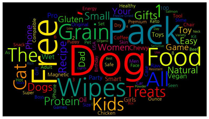 [('Dog', 56), ('Pack', 40), ('Free', 38), ('Wipes', 29), ('Food', 28), (',', 27), ('Grain', 25), ('All', 21), ('The', 19), ('Kids', 17), ('Cat', 17), ('1', 17), ('Treats', 16), ('Protein', 16), ('Gifts', 15), ('Dogs', 15), ('Recipe', 15), ('Small', 14), ('Natural', 14), ('Women', 13), ('Easy', 13), ('Toy', 12), ('Your', 12), ('Phone', 12), ('Dad', 12), ('Game', 12), ('Gluten', 12), ('Vegan', 12), ('Wet', 12), ('Pro', 12), ('Chewy', 12), ('Girls', 11), ('Toys', 11), ('Party', 11), ('Smart', 11), ('Oil', 11), ('Magnetic', 11), ('100', 11), ('Case', 11), ('Raw', 11), ('Chicken', 11), ('Gift', 10), ('Coffee', 10), ('Original', 10), ('Healthy', 10), ('Tool', 10), ('2', 10), ('Slime', 9), ('Boys', 9), ('Premium', 9), ('Safe', 9), ('Seen', 9), ('Set', 9), ('Men', 9), ('Skin', 9), ('Adult', 9), ('Pet', 9), ('Keto', 9), ('Chair', 9), ('Energy', 9), ('Ounce', 9), ('Dry', 9), ('Compatible', 9), ('Size', 9), ('iPhone', 9), ('6', 9), ('3', 9), ('|', 9), ('Kit', 8), ('8', 8), ('Birthday', 8), ('Puppy', 8), ('Face', 8), ('Games', 8), ('Hot', 8), ('Super', 8), ('Snack', 8), ('USA', 8), ('Car', 8), ('As', 8), ('Beef', 8), ('.', 8), ('Freeze-Dried', 8), ('Rich', 8), ('Salmon', 8), ('(', 8), ('Best', 7), ('Lights', 7), ('Box', 7), ('Sensitive', 7), ('More', 7), ('Variety', 7), ('4', 7), ('Low', 7), ('Use', 7), ('Resistant', 7), ('Day', 7), ('Organic', 7), ('Neck', 7), ('Powder', 7)]