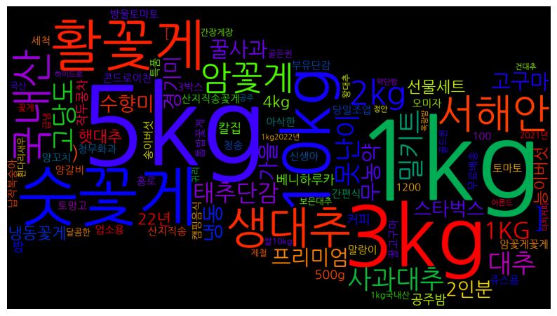 [('1kg', 12), ('5kg', 12), ('3kg', 10), ('숫꽃게', 9), ('10kg', 9), ('활꽃게', 7), ('생대추', 7), ('국내산', 6), ('서해안', 6), ('암꽃게', 5), ('2kg', 5), ('사과대추', 5), ('못난이', 5), ('고당도', 5), ('밀키트', 5), (']', 5), ('대추', 5), ('1KG', 4), ('태추단감', 4), ('프리미엄', 4), ('냉동', 4), ('꿀사과', 4), ('무농약', 4), ('고구마', 4), ('가을', 4), ('수향미', 4), ('경기미', 4), ('스타벅스', 4), (')', 4), ('2인분', 4), ('냉동꽃게', 3), ('햇대추', 3), ('선물세트', 3), ('4kg', 3), ('22년', 3), ('능이버섯', 3), ('베니하루카', 3), ('500g', 3), ('공주밤', 3), ('밤', 3), ('칼집', 3), ('[', 3), ('커피', 3), ('작두콩차', 3), ('당일조업', 2), ('산지직송꽃게', 2), ('암꽃게꽃게', 2), ('톱밥꽃게', 2), ('아삭한', 2), ('산지직송', 2), ('오미자', 2), ('3박스', 2), ('무료배송', 2), ('콘드로이친', 2), ('1200', 2), ('신생아', 2), ('업소용', 2), ('간편식', 2), ('토마토', 2), ('방울토마토', 2), ('토망고', 2), ('청무화과', 2), ('말랑이', 2), ('납작복숭아', 2), ('부유단감', 2), ('홍로', 2), ('청송', 2), ('특품', 2), ('쥬스용', 2), ('꿀고구마', 2), ('송이버섯', 2), ('100', 2), ('세척', 2), ('양갈비', 2), ('양꼬치', 2), ('캠핑음식', 2), ('1kg국내산', 2), ('급냉', 2), ('간장게장', 2), ('꽃게', 2), ('흰다리새우', 2), ('제철', 2), ('2021년', 2), ('골든퀸', 2), ('골드퀸', 2), ('귀리', 2), ('쌀10kg', 2), ('국산', 2), ('달콤한', 2), ('왕대추', 2), ('보은대추', 2), ('1kg2022년', 2), ('건대추', 2), ('옥광밤', 2), ('정안', 2), ('아몬드', 2), ('공주', 2), ('약단밤', 2), ('하이드로', 2), ('더치커피', 2)]