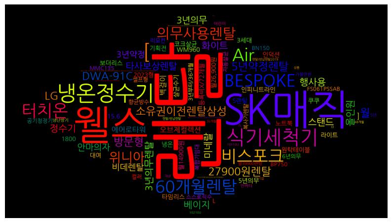 [('렌탈', 60), ('SK매직', 14), ('웰스', 13), ('냉온정수기', 8), ('식기세척기', 7), ('[', 7), ('BESPOKE', 5), ('비스포크', 5), ('Air', 5), ('60개월렌탈', 5), ('터치온', 5), ('의무사용렌탈', 5), ('위니아', 4), ('소유권이전렌탈삼성', 4), ('DWA-91C', 4), ('27900원렌탈', 4), ('5년약정렌탈', 4), ('LG', 4), ('방문형', 4), ('월', 4), ('행사용', 3), ('화이트', 3), ('베이지', 3), ('올인원', 3), ('정수기', 3), ('3년의무렌탈', 3), ('타사보상렌탈', 3), ('미네랄', 3), ('스탠드', 3), ('3년의무', 3), ('안마의자', 3), ('비데렌탈', 3), ('3년약정', 3), ('에어로타워', 3), ('오브제컬렉션', 3), ('벽걸이', 3), (']', 3), ('노트북', 2), ('15.6', 2), ('3세대', 2), ('2023형', 2), ('L', 2), ('기획전', 2), ('1800', 2), ('원탁테이블', 2), ('대여', 2), ('인피니트라인', 2), ('타임리스', 2), ('보더리스', 2), ('라이트', 2), ('인덕션', 2), ('5렌탈', 2), ('냉온', 2), ('등록비X/72개월', 2), ('쿠쿠', 2), ('코크살균', 2), ('살균수기', 2), ('WM960', 2), ('월14900원', 2), ('월26,900원', 2), ('5년의무', 2), ('공기청정기', 2), ('스스로직수', 2), ('3년부터/36개월', 2), ('MMC135', 2), ('향균방수', 2), ('BN150', 2), ('리모컨', 2), ('자동살균', 2), ('BP750', 2), ('셀프형', 2), ('복합기임대', 2), ('복사기렌탈', 2), ('컬러', 2), ('FS061PSSAB', 2), ('6년의무', 2), ('월39900렌탈', 2), ('인버터', 2), ('냉난방기', 2), ('5년', 2), ('가볼만한', 2), ('어린이', 2), ('I3', 1), ('10110U', 1), ('48개월', 1), ('렌탈/반납렌탈', 1), ('기업', 1), ('대상', 1), ('상품', 1), ('I5', 1), ('10210U', 1), ('36개월', 1), ('렌탈/반납렌탈2019', 1), ('그랜드스타렉스하이리무진/24시간기준/중소형/경유/오토/보험미포함렌탈2021팰리세이드8인승/24시간기준/중소형/경유/오토/보험미포함렌탈2021', 1), ('제네시스G70/24시간기준/중소형/휘발유/오토/고급자차포함렌탈2021', 1), ('제네시스G70/24시간기준/중소형/휘발유/오토/보험미포함렌탈K5', 1), ('/24시간기준/중소형/LPG/오토/고급자차포함렌탈K5', 1), ('/24시간기준/중소형/LPG/오토/보험미포함렌탈', 1), ('수입', 1), ('벤츠', 1)]