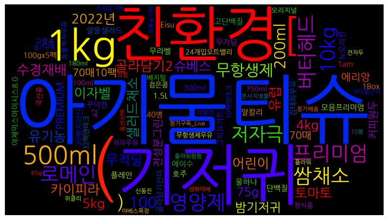[('아기물티슈', 6), ('(', 5), ('기저귀', 5), ('친환경', 4), ('1kg', 4), ('[', 4), ('500ml', 3), ('프리미엄', 3), ('버터헤드', 3), ('로메인', 3), ('쌈채소', 3), ('10kg', 3), ('영양제', 3), ('저자극', 3), (')', 3), ('200ml', 2), ('100', 2), ('무항생제', 2), ('골라담기2', 2), ('유기농', 2), ('수경재배', 2), ('유럽', 2), ('샐러드채소', 2), ('카이피라', 2), ('이자벨', 2), ('2022년', 2), ('4kg', 2), ('5kg', 2), ('토마토', 2), ('어린이', 2), ('무적딜', 2), ('슈베스', 2), ('밤기저귀', 2), ('75g', 2), ('70매10팩', 2), ('전성분그린', 2), ('PREMIUM', 2), ('에리앙', 2), ('70매', 2), ('커피원두', 2), ('1am', 1), ('알뜰샐러드', 1), ('100gx5팩', 1), ('야채믹스아이시스8.0', 1), ('300ml', 1), ('1.5L', 1), ('무라벨', 1), ('모음프리미엄', 1), ('알칼리', 1), ('Eisu', 1), ('에이수', 1), ('1Box', 1), ('20병지리산', 1), ('물하나', 1), ('40병', 1), ('골라담기산미', 1), ('꾸덕한', 1), ('그릭요거트', 1), ('플레인', 1), ('무가당', 1), ('고단백질', 1), ('뉴오리진', 1), ('a2', 1), ('단백질', 1), ('호주', 1), ('김태희우유', 1), ('24개입오트밸리', 1), ('오리지널', 1), ('귀리우유', 1), ('10팩덴마크', 1), ('동물복지우유', 1), ('750ml', 1), ('정식품', 1), ('베지밀', 1), ('국산콩', 1), ('검은콩', 1), ('고칼슘', 1), ('190ml', 1), ('32팩덴마크', 1), ('무항생제우유', 1), ('180ml', 1), ('정기구독_Live', 1), ('의령', 1), ('야베스목장', 1), ('수제요거트', 1), ('옵션선택', 1), ('정기구독', 1), ('위클리', 1), ('플라워', 1), ('생화택배', 1), ('정기배송', 1), ('플라워팜팜', 1), ('본사직영몰', 1), ('테일러', 1), ('65g', 1), ('10봉', 1), ('건자두', 1), ('아이들간식', 1), ('초록숟가락', 1), ('신동진', 1)]