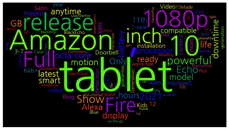 [(',', 13), ('tablet', 12), ('Amazon', 8), ('10', 8), ('1080p', 7), ('release', 7), ('Full', 6), ('Fire', 5), ('inch', 5), ('powerful', 5), ('Show', 5), ('2021', 4), ('Echo', 4), ('octa-core', 3), ('processor', 3), ('ready', 3), ('downtime', 3), ('anytime', 3), ('latest', 3), ('model', 3), ('motion', 3), ('smart', 3), ('display', 3), ('hours', 3), ('battery', 3), ('life', 3), ('GB', 3), ('Alexa', 3), ('Only', 3), ('compatible', 3), ('11th', 3), ('Video', 2), ('Doorbell', 2), ('video', 2), ('improved', 2), ('detection', 2), ('easy', 2), ('installation', 2), ('Satin', 2), ('Ring', 2), ('Kids', 2), ('ages', 2), ('3–7', 2), ('our', 2), ('biggest', 2), ('most', 2), ('12', 2), ('1-year', 2), ('Kids+', 2), ('content', 2), ('2', 2), ('year', 2), ('worry-free', 2), ('guarantee', 2), ('2022', 2), ('BlackEcho', 2), ('your', 2), ('32', 2), ('Gen', 2), ('|', 2), ('Blue', 2), ('Tilt', 2), ('Stand', 2), ('Kid-Proof', 2), ('Case', 2), ('generation', 2), ('15Made', 2), ('Plus', 2), ('Generation', 2), ('(', 2), ('BlackRing', 1), ('NickelEcho', 1), ('15.6', 1), ('family', 1), ('organization', 1), ('AlexaRing', 1), ('Chime', 1), ('Notifications', 1), ('cameras', 1), ('doorbellsFire', 1), ('Sky', 1), ('BlueCertified', 1), ('Refurbished', 1), ('NickelFire', 1), ('7', 1), ('16', 1), ('light', 1), ('portable', 1), ('entertainment', 1), ('home', 1), ('on-the-go', 1), ('DenimFire', 1), ('Auto', 1), ('1st', 1), ('gen', 1), ('-', 1), ('Hands-free', 1), ('car', 1), ('phoneFire', 1), ('LavenderFire', 1)]