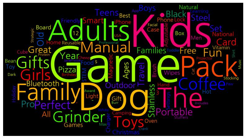 [('Game', 30), ('Kids', 29), ('Dog', 21), ('Adults', 19), ('Pack', 19), ('The', 18), ('Family', 17), ('Coffee', 16), ('Gifts', 16), ('Girls', 15), ('Grinder', 15), ('Toys', 15), ('Manual', 14), ('Perfect', 13), ('Fun', 13), ('Portable', 13), ('Card', 12), ('Year', 12), ('Old', 11), ('Great', 11), ('Teens', 11), ('Travel', 11), ('Pro', 11), ('Stainless', 10), ('Steel', 10), ('Set', 10), ('Black', 10), ('Free', 10), ('Boys', 9), ('Families', 9), ('Outdoor', 9), ('Pizza', 9), ('Smart', 9), ('Bluetooth', 9), ('All', 9), ('Ages', 9), ('Christmas', 9), ('Games', 9), ('Gift', 8), ('Best', 8), ('National', 8), ('Phone', 8), ('Board', 8), ('Toy', 8), ('Light', 8), ('Magnetic', 8), ('Wipes', 8), ('Case', 8), ('Natural', 8), ('Food', 8), ('-', 8), (',', 8), ('Friendly', 7), ('Oven', 7), ('Charger', 7), ('Lock', 7), ('Home', 7), ('STEM', 7), ('Brush', 7), ('Men', 7), ('12', 7), ('iPhone', 7), ('Hot', 7), ('s', 7), ('3', 7), ('Box', 7), ('Bean', 6), ('Adjustable', 6), ('Settings', 6), ('Hand', 6), ('Holiday', 6), ('Vitamin', 6), ('Camping', 6), ('Reusable', 6), ('Cube', 6), ('Learning', 6), ('Projector', 6), ('Birthday', 6), ('Toddler', 6), ('Dark', 6), ('Stocking', 6), ('Stuffers', 6), ('Facial', 6), ('Shirt', 6), ('White', 6), ('Max', 6), ('App', 6), ('Cat', 6), ('Chewy', 6), ('Paw', 6), ('Strategic', 5), ('JavaPresse', 5), ('Burr', 5), ('Crank', 5), ('USA', 5), ('Award', 5), ('Protein', 5), ('Music', 5), ('Includes', 5), ('Professional', 5)]