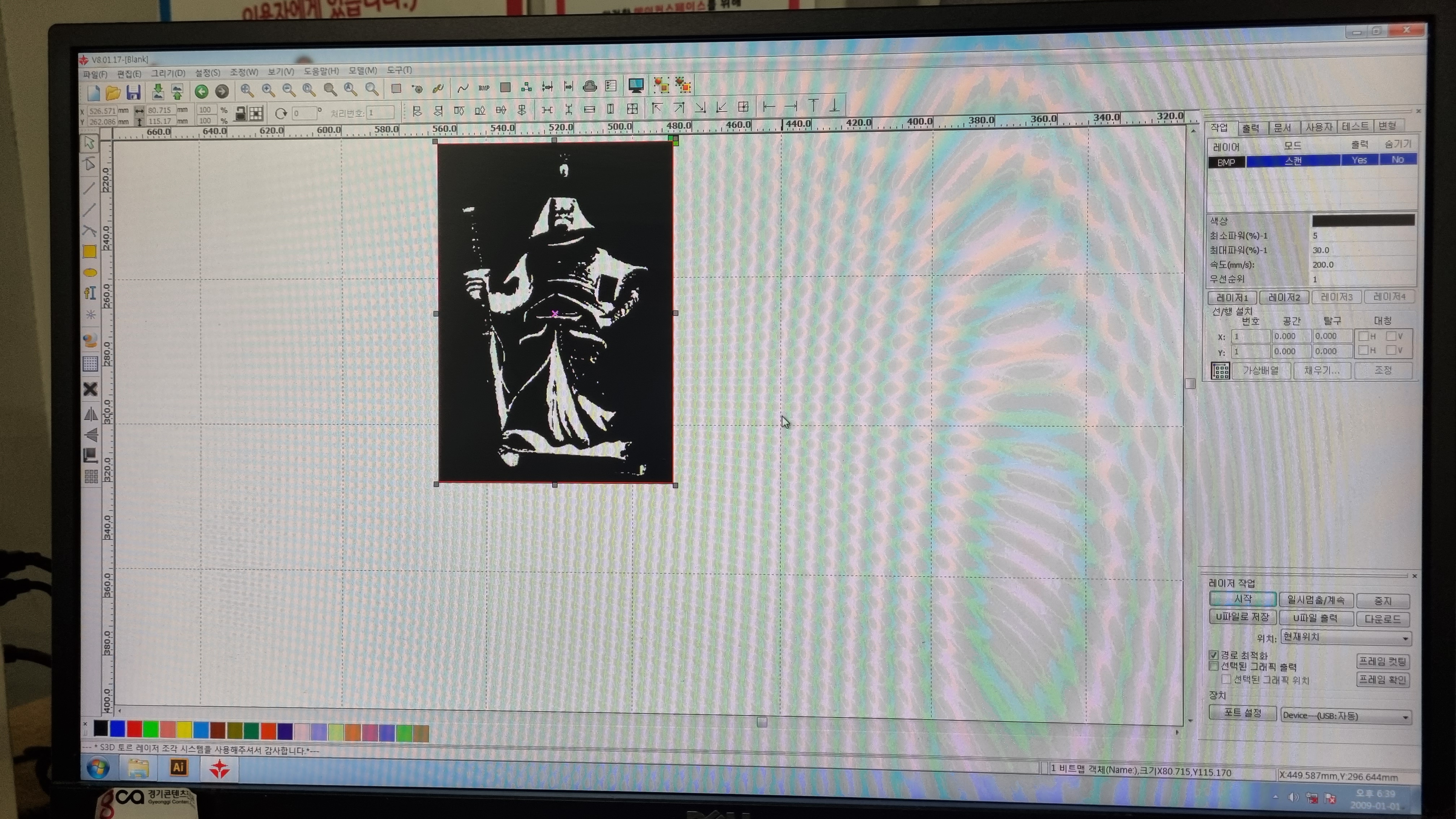 이순신 장군 동상사진을 아크릴에 새기는 과정