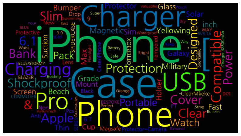 [('iPhone', 15), ('Case', 11), ('[', 8), ('Phone', 7), ('Charger', 7), ('USB', 5), ('Pro', 4), ('Charging', 4), ('Compatible', 3), ('Shockproof', 3), ('Slim', 3), ('Cover', 3), ('Clear', 3), ('Designed', 3), ('Apple', 3), ('6.1', 3), ('Protection', 3), ('&', 3), ('Power', 3), ('Bank', 3), ('Portable', 3), ('Pack', 3), ('Watch', 3), (',', 3), ('Magnetic', 2), ('Max', 2), ('Yellowing', 2), ('Glass', 2), ('Screen', 2), ('Protector', 2), ('Thin', 2), ('Bumper', 2), ('Military', 2), ('Grade', 2), ('inch', 2), ('Solar', 2), ('Fast', 2), ('Beach', 2), ('Sim', 2), ('Galaxy', 2), ('Mount', 2), ('Suction', 2), ('Cup', 2), ('Holder', 2), ('9', 1), ('1', 1), ('Magsafe', 1), ('Non', 1), ('Pcs', 1), ('Protector+Camera', 1), ('Lens', 1), ('6.7', 1), ('-ClearMkeke', 1), ('New', 1), ('Protective', 1), ('Anti', 1), ('SPIDERCASE', 1), ('Case/iPhone', 1), ('FT', 1), ('Drop', 1), ('pcs', 1), ('Tempered', 1), ('Black', 1), ('OTTERBOX', 1), ('COMMUTER', 1), ('SERIES', 1), ('BESPOKE', 1), ('WAY', 1), ('BLAZER', 1), ('BLUE/STORMY', 1), ('SEAS', 1), ('BLUE', 1), ('Charger,42800mAh', 1), ('External', 1), ('Battery', 1), ('5V3.1A', 1), ('3.0', 1), ('Built-in', 1), ('Super', 1), ('Bright', 1), ('Flashlight', 1), ('Orange', 1), ('AiRunTech', 1), ('Waterproof', 1), ('Pouch', 1), ('Waist', 1), ('Strap', 1), ('Accessories', 1), ('Best', 1), ('Way', 1), ('Keep', 1), ('Your', 1), ('Valuables', 1), ('Safe', 1), ('Dry', 1), ('|', 1), ('Perfect', 1), ('Boating', 1), ('Swimming', 1), ('Snorkeling', 1)]
