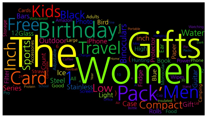 [('The', 44), ('Women', 44), ('Gifts', 42), ('Birthday', 40), ('Pack', 36), (',', 34), ('Card', 26), ('Men', 26), ('1', 25), ('Free', 24), ('Travel', 24), ('Kids', 22), ('Inch', 21), ('Compact', 20), ('Low', 20), ('Black', 20), ('Sports', 20), ('Water', 20), ('Binoculars', 20), ('Outdoor', 18), ('Series', 18), ('Ice', 18), ('Stainless', 18), ('Steel', 18), ('Bars', 18), ('inch', 18), ('Case', 18), ('(', 18), ('[', 17), ('Light', 16), ('12', 16), ('iPhone', 16), ('Bird', 16), ('Photo', 16), ('Gift', 16), ('Glass', 16), ('Guitar', 16), (')', 16), ('Fridge', 14), ('Paper', 14), ('Filter', 14), ('Blue', 14), ('Protector', 14), ('Rolls', 14), ('Count', 14), ('Book', 14), ('Ear', 14), ('High', 14), ('Hunting', 14), ('Power', 14), ('Good', 14), ('All', 14), ('Cards', 14), ('Straw', 14), ('Storage', 14), ('Food', 14), ('2', 14), ('Wipes', 14), ('6', 13), ('Adjustable', 12), ('Large', 12), ('Phone', 12), ('Accessories', 12), ('Amazon', 12), ('Pro', 12), ('Screen', 12), ('Monocular', 12), ('Camping', 12), ('Adults', 12), ('Waterproof', 12), ('Watching', 12), ('Year', 12), ('30', 12), ('24', 12), ('Pin', 12), ('4', 12), ('A', 12), ('x', 12), ('10', 12), ('Coffee', 12), ('Protein', 12), ('Insulated', 12), ('Lid', 12), ('Cup', 12), ('Charger', 11), ('Packs', 10), ('Home', 10), ('Mini', 10), ('Office', 10), ('Portable', 10), ('Fine', 10), ('School', 10), ('Stand', 10), ('Air', 10), ('Hanging', 10), ('Towels', 10), ('Dark', 10), ('Bottle', 10), ('Football', 10), ('Compatible', 10)]