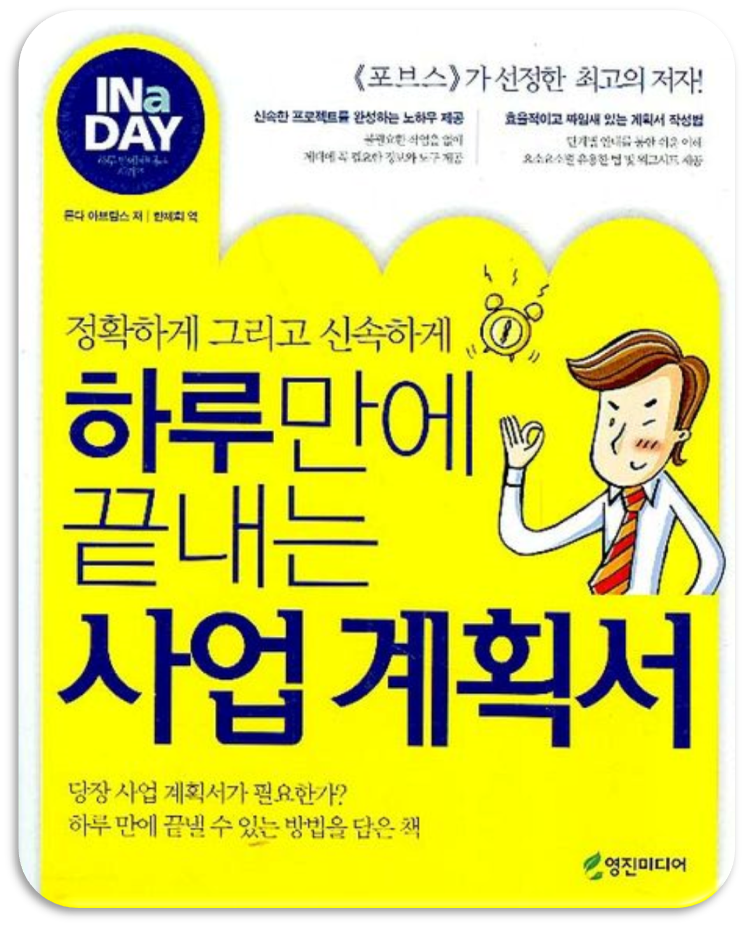 [책 소개] 하루 만에 사업 계획서를 작성할 수 있도록 도와주는 요술 램프! 잠재적 투자자나 비즈니스 파트너가 갑자기 사업 계획서를 보자고 한다면? 팀 경영 계획 보고 시 사업 계획서를 제출해야 한다면? 신속하게 사업 계획서를 작성해야 하는 당신을 위해『하루 만에 끝내는 사업 계획서』가 발간되었다. 저자는 바쁜 현대 비즈니스맨들을 위해 하루 만에 '신속'하면서도 '정확'하게 사업 계획서를 작성하는 방법을 안내한다. 이 책은 사업 계획서에 없어서는 안 될 핵심 요소만을 뽑아 단계별(핵심요약 → 회사소개 → 목표시장 → 경쟁자분석 → 마케팅 및 영업계획 → 운영 → 경영구조 → 미래발전 → 재무 → 프레젠테이션 작성) 안내를 통한 쉬운 이해와 요소요소별 유용한 팁 및 워크시트를 제공하기 때문에 쉽게 이해할 수 있고, 따라하기도 용이하다. 특히 가상 회사의 사업 계획서 예제를 통해 완성된 사업 계획서의 각 항목이 어떤 형식으로 무슨 내용을 포함하고 있는지 알려준다. 또한 사업 계획서를 읽고 평가하는 일을 전문적으로 하는 4명의 인터뷰를 수록하여 어떻게 하면 성공적인 계획서를 작성할 수 있는지, 계획서 작성시 흔히 발생하는 실수가 무엇인지도 파악할 수 있도록 하였다. |