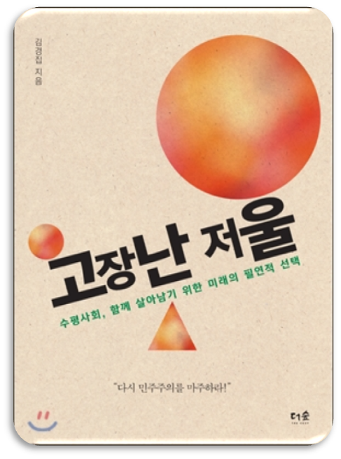 [책 소개] 누구나 실천할 수 있는 대안으로 수평사회를 그리다! 『고장난 저울』은 인문학자 김경집이 한국 사회의 잃어버린 균형을 회복하기 위한 현실적 진단과 실천을 위해 민주주의를 다룬 책이다. 민주주의는 우리가 맞이할 현실적 삶의 미래에 꼭 필요한 것이며, 민주주의라는 틀 위에서 우리 사회의 모든 분야 문제에 있어서 수평사회라는 패러다임을 반드시 만들어 가야 한다고 말한다. 그 중에서도 특히 ‘경제’, ‘교육’, ‘세대’를 미래 의제로 뽑아 논했다. 저자는 어려운 용어나 이론 대신, 다양한 사례를 통해 우리 삶의 모습을 생생하게 담아냈다. 사회 경제적 불평등과 수직 명령체계로 인한 성장 동력의 상실에 대해 다루고, 여전히 소수를 위한 교육현실과 그것이 낳을 또 다른 불균형을 이야기한다. 이어 세대에서는 수평사회를 온전히 경험하지 못했지만 그래도 최초의 수평사회의 기초적 교육을 받고 실제로 그런 사회를 위해 싸웠던 새로운 실버 ‘세시봉’ 세대의 역할을 중점으로 살펴봤다. |