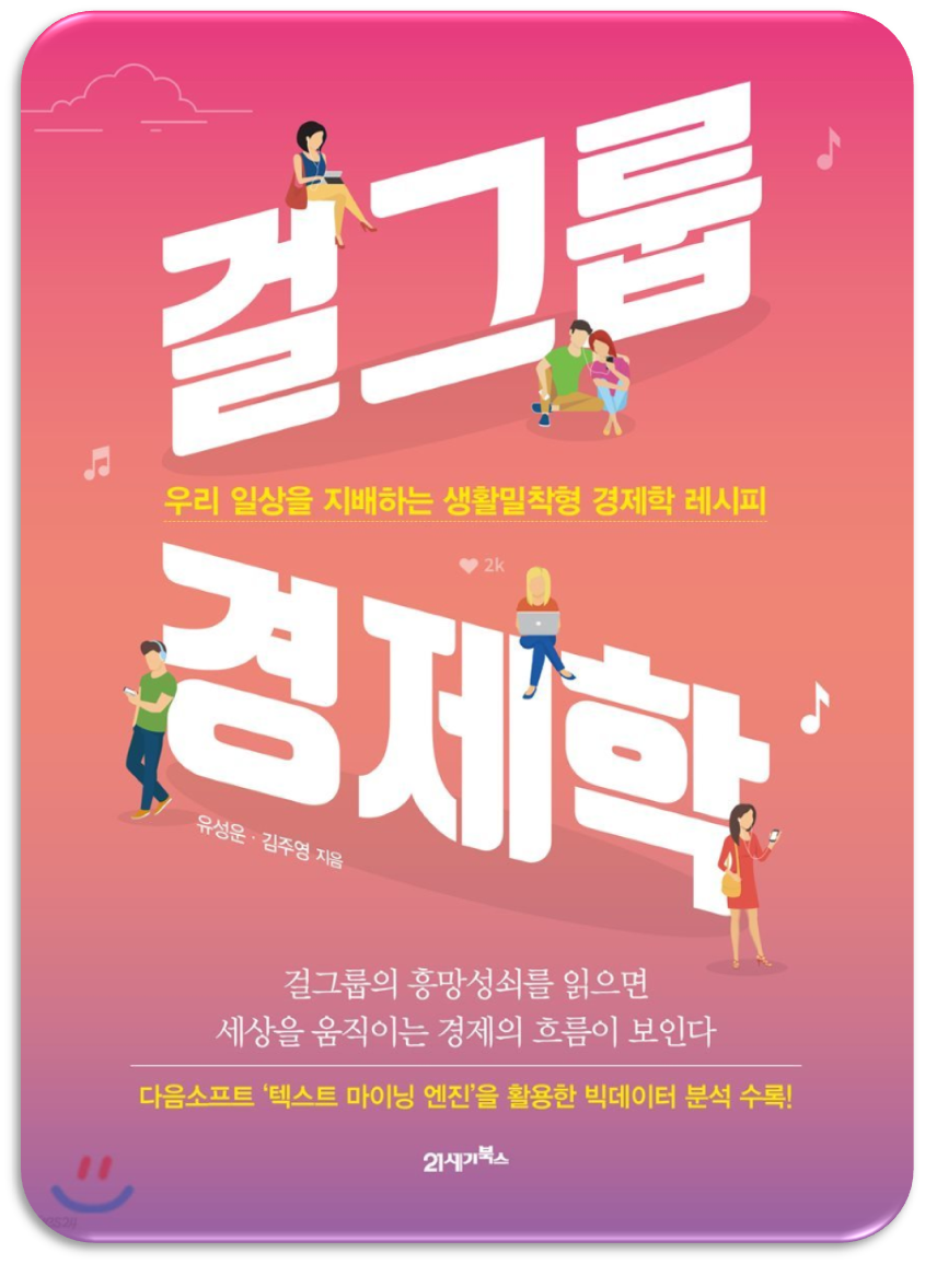 [책 소개] 걸그룹의 흥망성쇠를 통해 경제 기초상식을 읽다! 걸그룹을 둘러싼 각종 사회문화 현상을 경제학으로 풀어낸 『걸그룹 경제학』. 본업은 기자와 엔지니어지만 흔히 ‘삼촌팬’이라고 불리는 걸그룹 덕후인 두 저자가 2007년 소위 2세대 걸그룹의 시초라 불리는 소녀시대와 원더걸스가 등장한 뒤 마음 한구석에 궁금증으로 남아 있던 의문을 각종 사회경제학적 이론의 틀을 빌려 우리의 일상을 지배하는 생활밀착형 경제원리 중 반드시 알아야 31개의 사회경제법칙을 풀어나가는 책이다. 걸그룹 멤버수가 점점 늘어나는 이유는 링겔만 효과 때문이며, 걸그룹이 시청률 3%의 가요 프로그램을 포기하지 못하는 이유는 버핏 효과 때문이다. 걸그룹에도 8020의 파레토 법칙이 적용되고, 레임덕이 있으며, 공전의 히트를 기록한 ‘프로듀스101’의 ‘Pick me’ 노랫말에는 지프의 법칙이 적용된다. 이처럼 경제학에 대한 기본지식이 전무한 이들도 쉽게 이해할 수 있는 언어로 복잡한 사회경제문제를 명쾌하게 풀어낸다. - from 교보문고 |