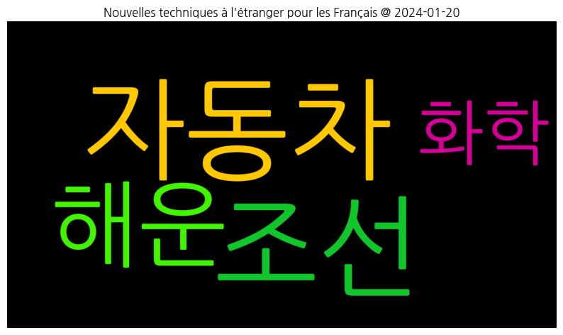 | Nouvelles techniques à l'étranger pour les Français @ 2024-01-22 (0) | 2024.01.22 |