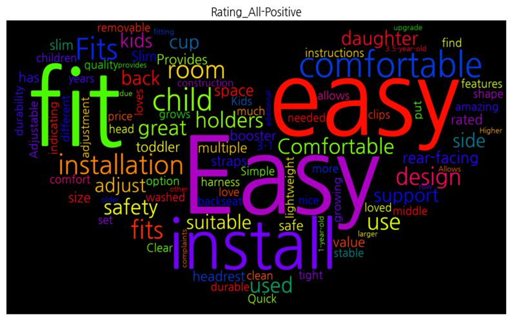 | 긍정 속성 | ![]() [('Easy', 17), ('fit', 16), ('easy', 16), ('install', 15), ('comfortable', 14), ('Fits', 10), ('child', 10), ('installation', 8), ('room', 7), ('fits', 7), ('use', 6), ('design', 6), ('great', 5), ('Comfortable', 5), ('used', 5), ('holders', 5), ('safety', 5), ('support', 4), ('adjust', 4), ('kids', 4), ('daughter', 4), ('cup', 4), ('side', 4), ('back', 4), ('suitable', 4), ('rear-facing', 4), ('space', 4), ('rated', 3), ('size', 3), ('booster', 3), ('Slim', 3), ('value', 3), ('straps', 3), ('toddler', 3), ('multiple', 3), ('headrest', 3), ('Provides', 3), ('safe', 3), ('slim', 3), ('has', 3), ('middle', 2), ('loves', 2), ('Clear', 2), ('instructions', 2), ('Kids', 2), ('find', 2), ('harness', 2), ('amazing', 2), ('shape', 2), ('years', 2), ('needed', 2), ('different', 2), ('price', 2), ('features', 2), ('loved', 2), ('lightweight', 2), ('nice', 2), ('washed', 2), ('comfort', 2), ('adjustment', 2), ('Adjustable', 2), ('children', 2), ('love', 2), ('option', 2), ('removable', 2), ('Quick', 2), ('grows', 2), ('durable', 2), ('3-1', 2), ('put', 2), ('allows', 2), ('backseat', 2), ('clean', 2), ('set', 2), ('tight', 2), ('more', 2), ('indicating', 2), ('durability', 2), ('clips', 2), ('stable', 2), ('quality', 2), ('Simple', 2), ('much', 2), ('growing', 2), ('head', 2), ('construction', 2), ('other', 1), ('Allows', 1), ('fitting', 1), ('upgrade', 1), ('complaints', 1), ('1-year-old', 1), ('3.5-year-old', 1), ('older', 1), ('due', 1), ('larger', 1), ('Higher', 1), ('provides', 1), ('additional', 1), ('row', 1)] |