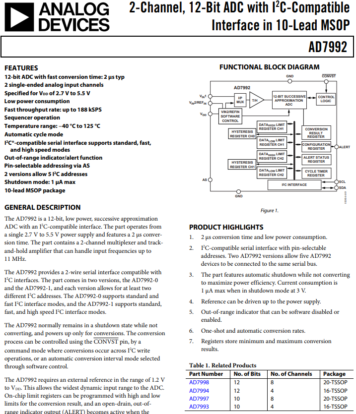 AD7992, 12-bit, 2 single-ended analog input channgels