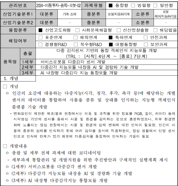 인간의 오감에 대응하는 다중지능(시각, 청각, 후각, 촉각 등)에 해당하는 개별 센서의 데이터를 통합하여 사물을 종류 및 상태를 인식하는 지능형 객체인식 플랫폼 기술 개발
