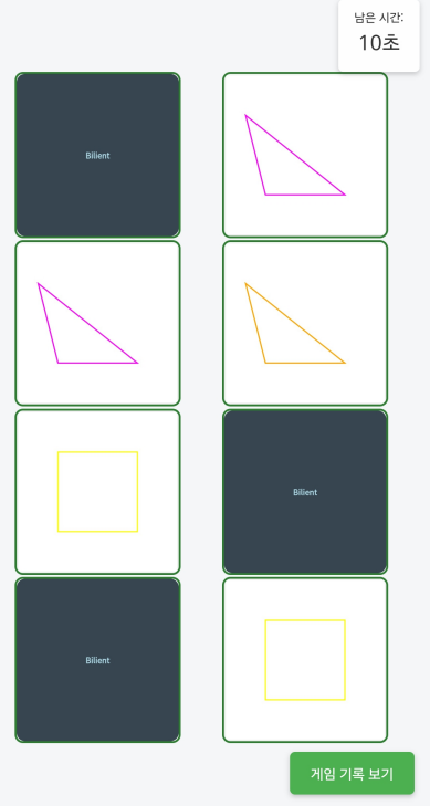 도형 매칭 게임 남은 시간 : 초 게임 기록 보기