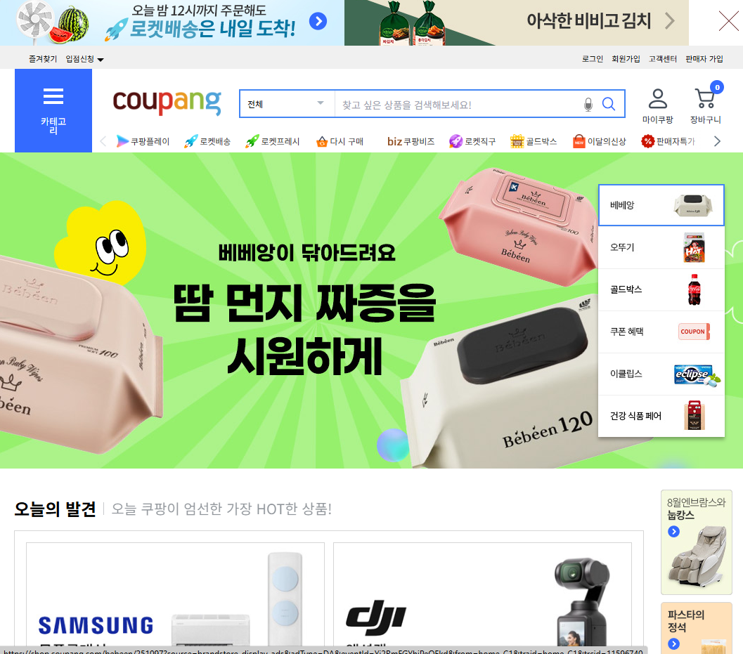 | 로켓배송으로 빠르게, 로켓와우 멤버십으로 할인과 무료 반품까지 | 쿠팡 |