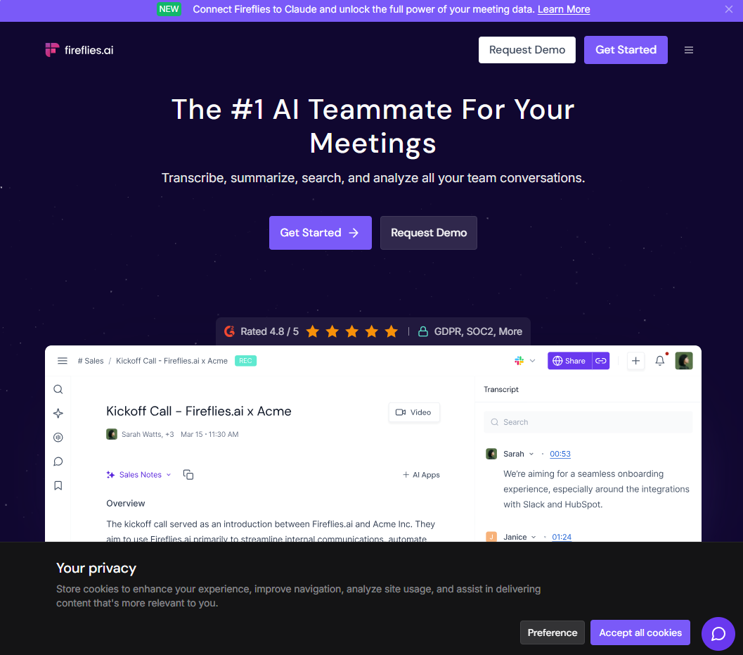 | Fireflies.ai | AI notetaker to transcribe, summarize, analyze meetings, Real time AI note taker |