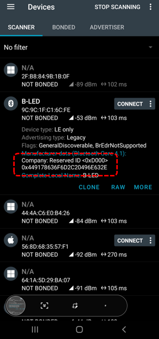 uint8_t manufacturerData[14] = {0x00, 0xD0, 0x44, 0x65, 0x78, 0x63, 0x6f, 0x6d, 0x2c, 0x20, 0x49, 0x6e, 0x63, 0x2e};