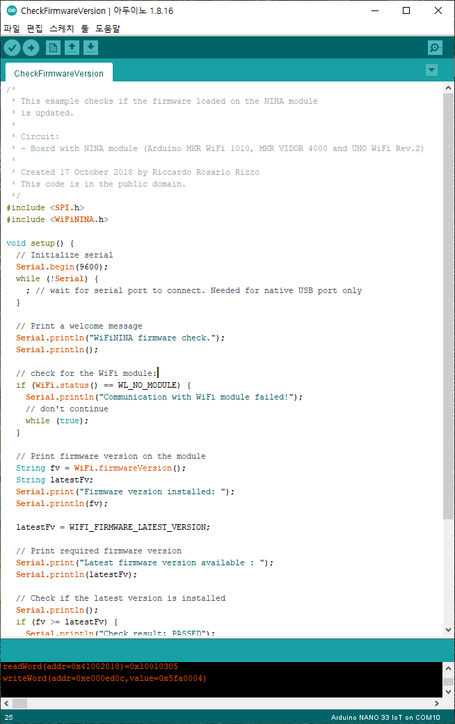 "arduino-fwuploader firmware flash -b arduino:samd:nano_33_iot -a COM10"