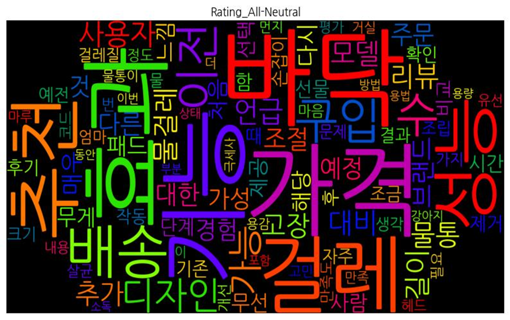 | [('바닥', 345), ('걸레', 227), ('배송', 224), ('가격', 141), ('생각', 140), ('정말', 130), ('물걸레', 127), ('디자인', 113), ('아주', 110), ('구입', 105), ('한번', 100), ('느낌', 100), ('물통', 95), ('조금', 92), ('역시', 87), ('예전', 86), ('고장', 84), ('처음', 83), ('추천', 82), ('만족', 82), ('조절', 82), ('가성', 77), ('길이', 75), ('정도', 75), ('바로', 74), ('고민', 73), ('진짜', 72), ('걸레질', 68), ('다시', 66), ('단계', 65), ('보고', 65), ('성능', 64), ('주문', 61), ('기능', 60), ('마음', 59), ('후기', 59), ('빵빵', 59), ('모델', 56), ('부분', 54), ('완전', 54), ('대비', 52), ('이번', 51), ('무게', 51), ('때', 51), ('무선', 50), ('최고', 49), ('패드', 49), ('기분', 49), ('물통이', 49), ('거실', 48), ('조립', 47), ('금방', 46), ('선물', 46), ('손잡이', 44), ('기존', 44), ('자마자', 43), ('시간', 42), ('다른', 41), ('하나', 41), ('다만', 40), ('살균', 40), ('것', 39), ('더', 39), ('일단', 38), ('엄마', 38), ('코드', 37), ('리뷰', 37), ('물이', 36), ('진작', 36), ('이제', 33), ('그냥', 33), ('선택', 33), ('마루', 33), ('얼룩', 33), ('유선', 33), ('분사', 32), ('자주', 32), ('소리', 32), ('물', 32), ('해도', 31), ('매일', 31), ('좀', 31), ('허리', 30), ('때문', 30), ('매우', 30), ('강아지', 29), ('매트', 29), ('이전', 29), ('추가', 29), ('작동', 29), ('듭니', 29), ('전선', 28), ('브랜드', 27), ('이사', 27), ('기본', 26), ('사서', 26), ('전이', 26), ('힘', 26), ('집', 26), ('약간', 25)] | |